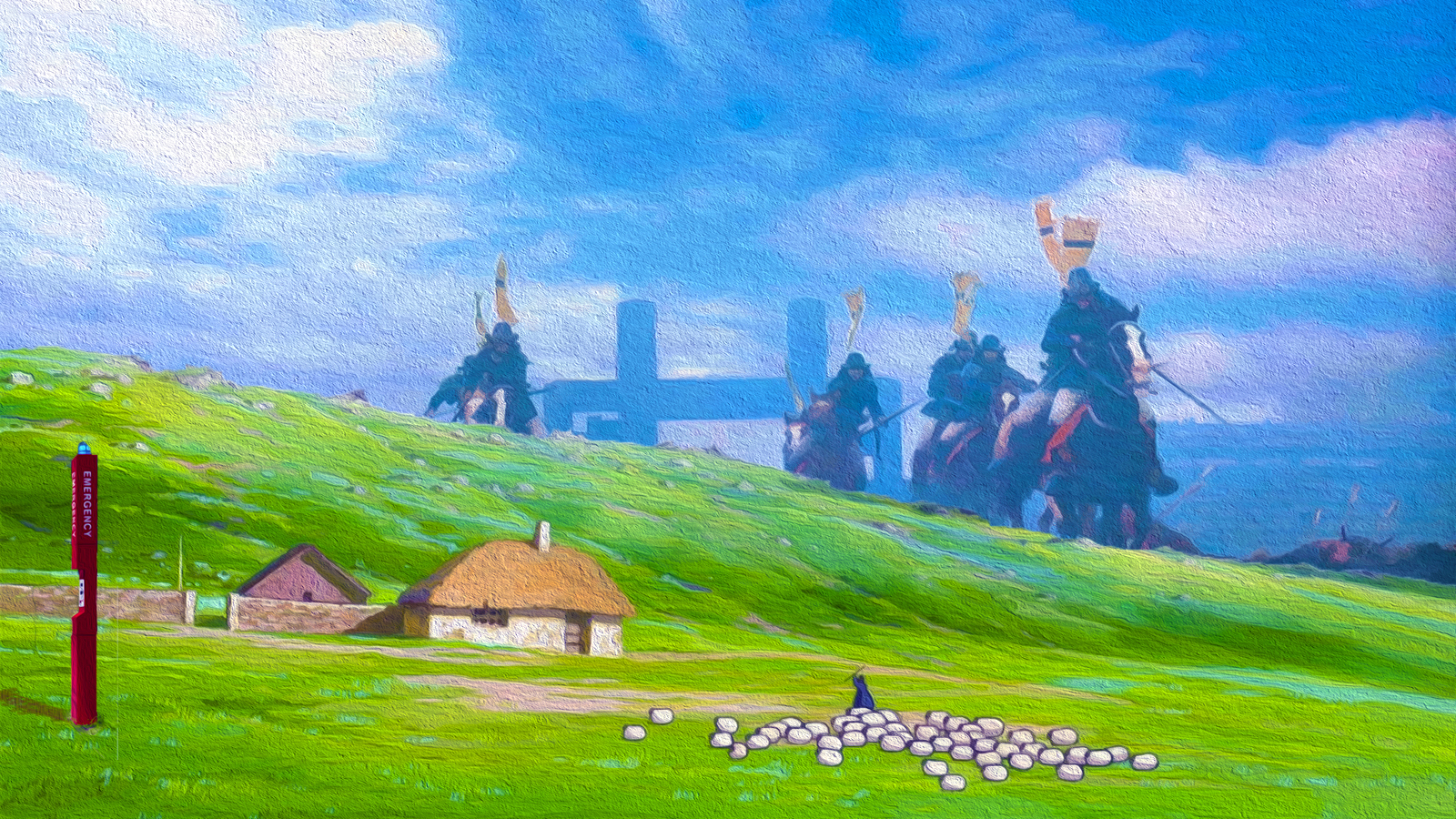 Collage D: For fun, The soldiers of Kirosawa's RAN storm the fields of Miyazaki's Nausicaa. Contains the kind of ubiquitous Emergency Station, not quite to scale for either company.